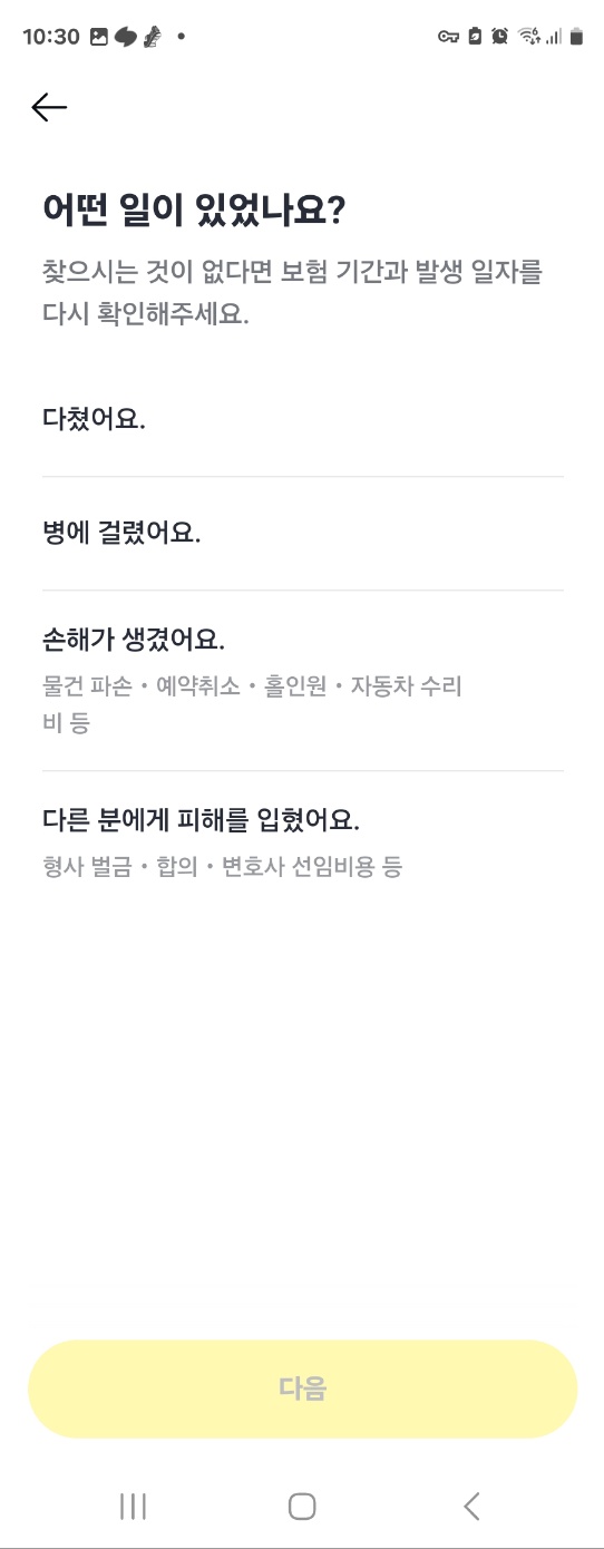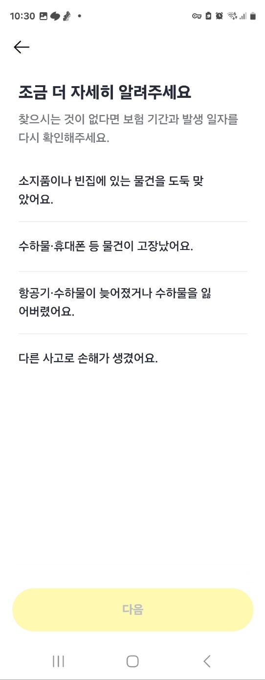 다음에는 사고 내용을 입력하게 됩니다. 사고 일시, 사고 내용, 사고 물품 정보를 입력하는데 사실 딸 핸드폰을 언제 구입했는지 기억도 안 나고, 가격은 통신사 이동 특가로 지원금 받으면서 핸드폰을 받은 경우라 대충 적었어요.